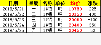 上周鉛價上漲925元,同比上漲4650元。