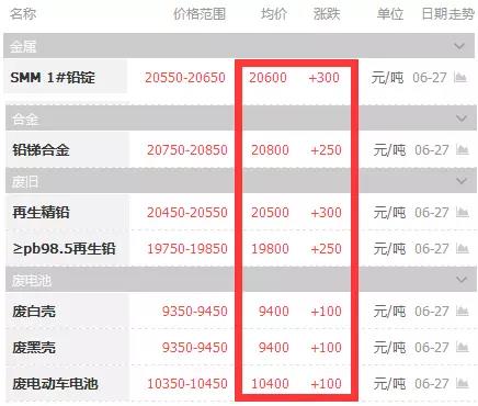 6-27 跌沒幾天,今日鉛價(jià)又大漲300元/ 均價(jià)20600元