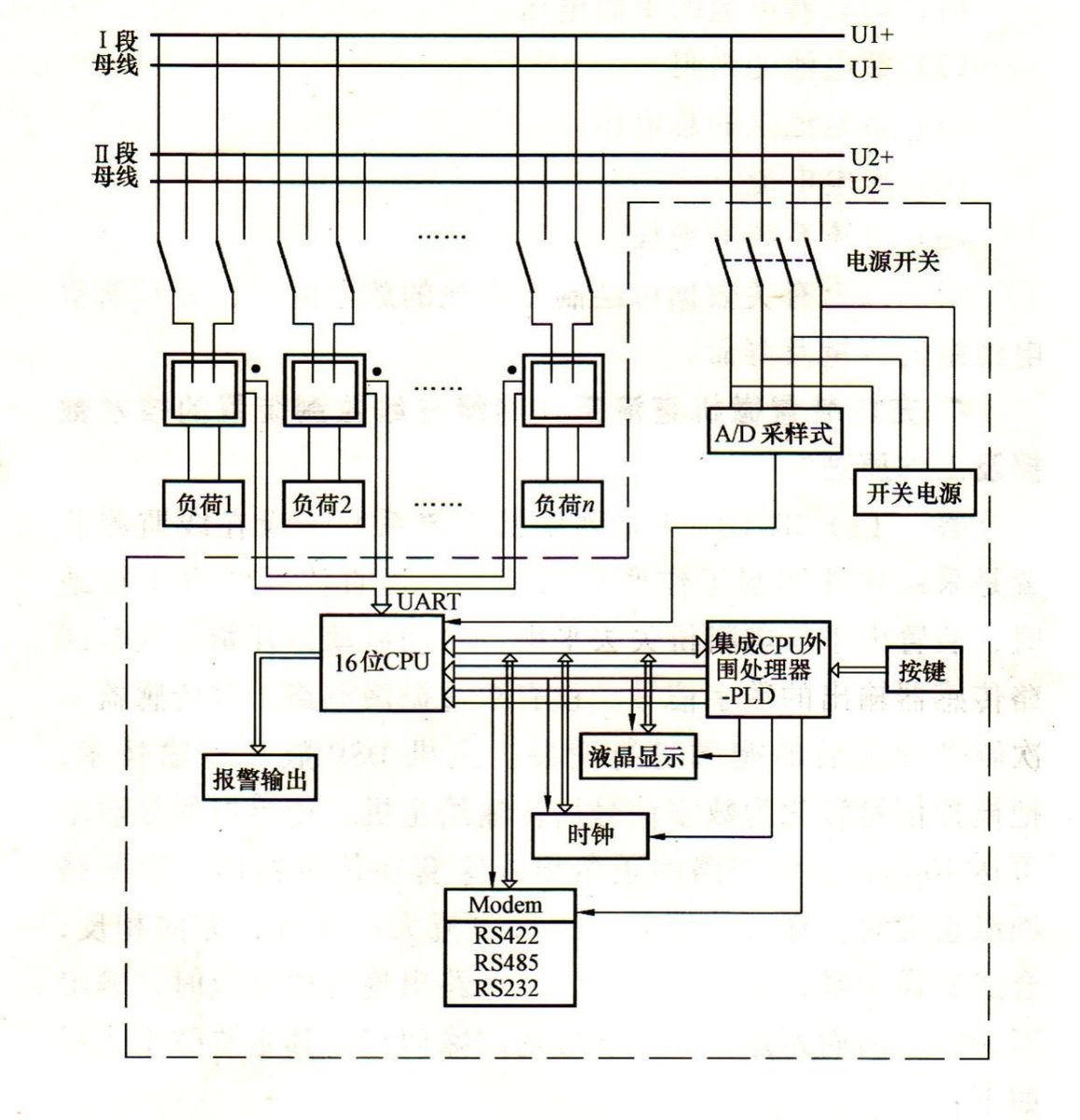 注 1本裝置適用于一段母線,也適用于二段母線。2圖中UART分為四束總線,即UARTl、UART2、UART3、UART4,每束總線帶32路傳感器。